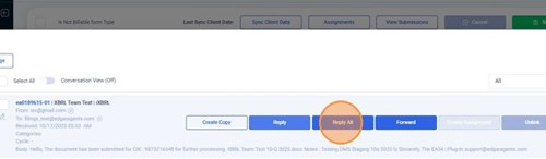 Select “Reply All” in the Correspondence tab on the email you want to reply to.