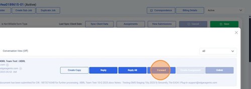 Select “Forward” from the Correspondence tab to forward an email to the appropriate teams.