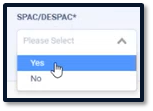 Use the SPAC/de-SPAC dropdown to indicate if the company is SPAC or de-SPAC.